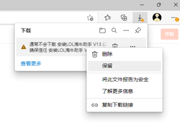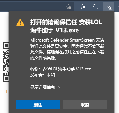 🕮 浏览器下载可执行文件时通常会检查文件的签名证书,由于本软件未安装数字签名,下载时经常会弹出此提示。本文以最常见的 Edge 和 谷歌浏览器 为例演示如何下载。
