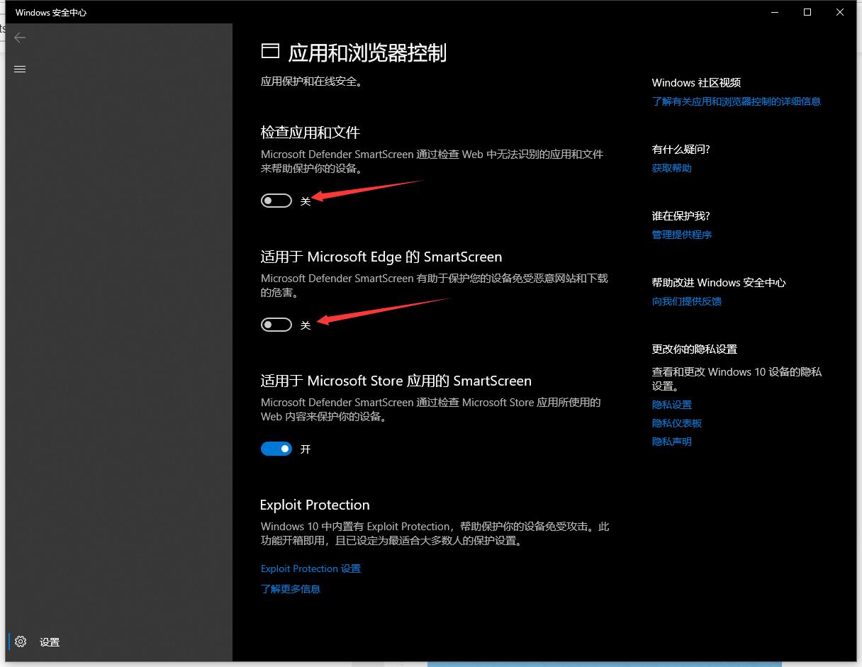 🕮 在 Win10 / Win11 系统中,使用自带浏览器 Edge 下载软件时,可能出现“SmartScreen 阻止下载”的提示,这是由于本地安全策略导致的,您可以通过以下图示关闭相关保护选项。